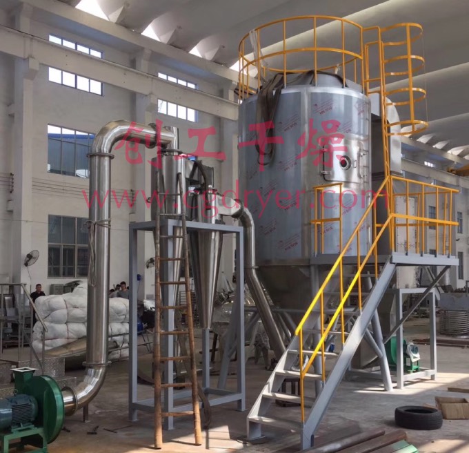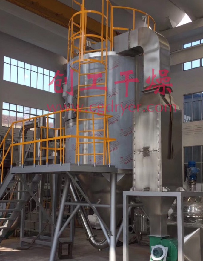 香精香料喷雾干燥机是将香精香料液体原料用雾化器分散成雾滴,并用热空气(或其他气体)与雾滴直接接触的方式而获得氧化铝粉粒状产品的一种干燥过程。空气经过滤和加热,进入干燥器顶部热风分配器,热空气呈螺旋状均匀地进入干燥室,料液经塔体顶部的高速离心雾化器,
